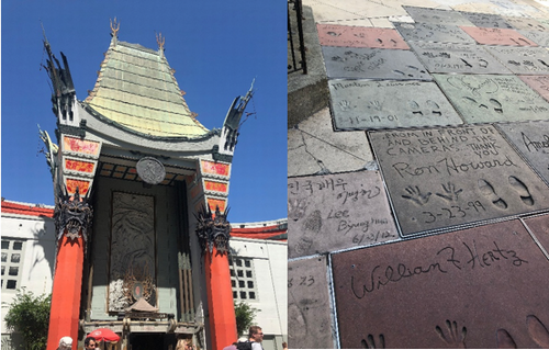 世界で一番有名な映画館といわれる「グローマンズ・チャイニーズ・シアター」の前のタイルにはハリウッドスターのサイン・手形・足形がたくさん!